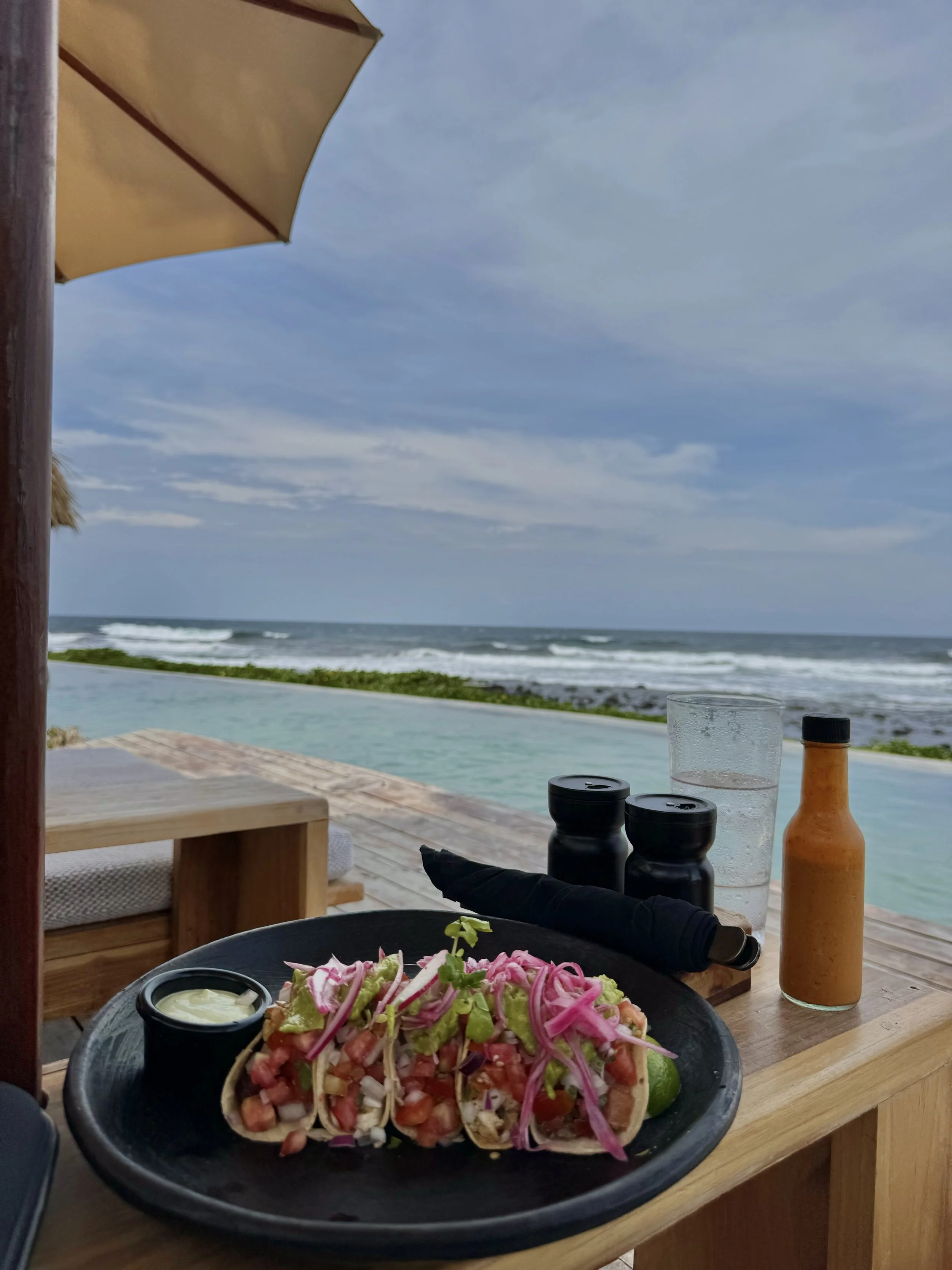 A yoga retreat with surfing, horseback riding, a waterfall trip, sound healing, a traditional Mayan Blessing, saunas, cold plunge, three gourmet meals a day, transportation to and from the airport and, of course, daily yoga and meditation.