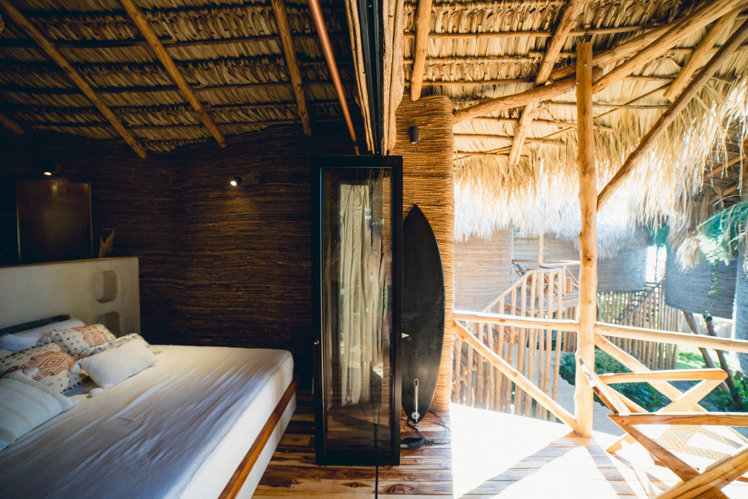 The most luxurious room option: 180 degree Ocean Views, Premium King-Size Bed, Teak Wood Flooring, Flax Linen Sheets, Hot Rain Shower, Shampoo, Conditioner, Body Wash, Towels & Hair Dryer, Infinity Porch, Hanging Net Lounge Area, Mini Bar, Wi-Fi, Filtered Water Station, Air Conditioner